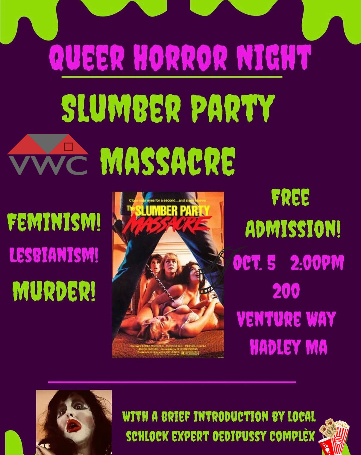 Home Events Queer Horror Movie Night Queer Horror Movie Night The event is finished. Date Oct 05 2025 Expired! Time 2:00 pm - 4:30 pm Cost FREE Location Venture Way Collaborative 200 Venture Way, Hadley, MA 01035 Organizer Queer Valley Library Project Email callum7979@gmail.com ❤️Design community in community ❤️All welcome ❤️Your voice matters ❤️You matter Share this event